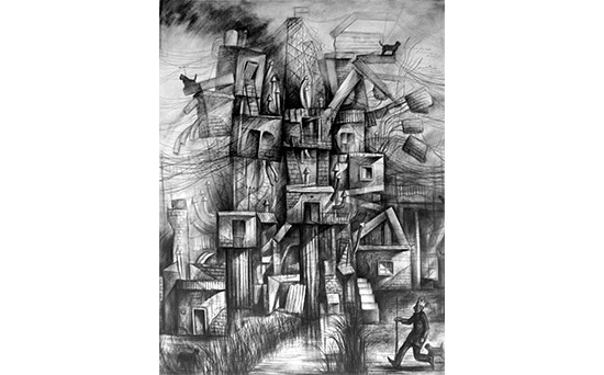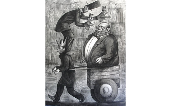 • Parábola del trabajo, carbonilla sobre tela, 200x150 cm