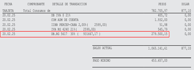 - Cuota/s refinanciación/cuotificación de saldos de tarjeta de crédito.
